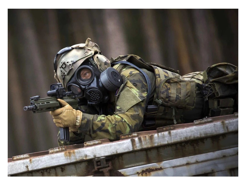 - Plynová maska se dodává s použitým filtrem po expiraci (nemusí mít uzávěr), použitou taškou (ušpiněná, podepsaná, trhliny), použitou jednorázovou pláštěnkou různých typů (může být rozbalená), a s ventilem na polní láhev (různé druhy)