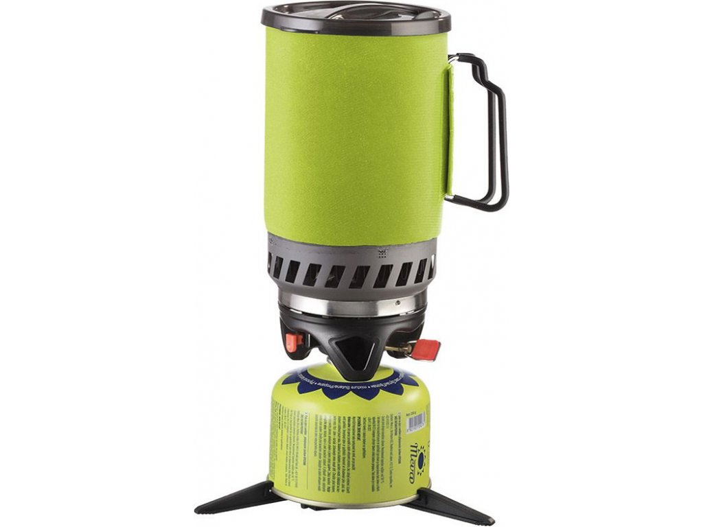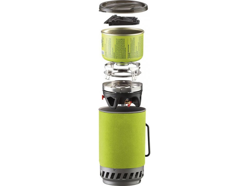 - vařič díky tepelnému výměníku dokáže ohřát stejné množství vody za stejný čas, jako ostatní outdoorové vařiče, jen se třetinovou spotřebou plynu