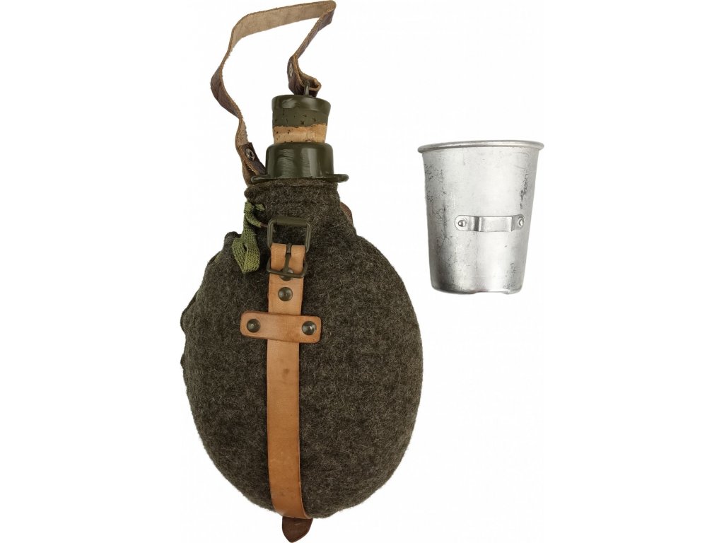 - Field bottle aluminum chutora with felt cover and mug Czechoslovak People's Army ČSLA.
