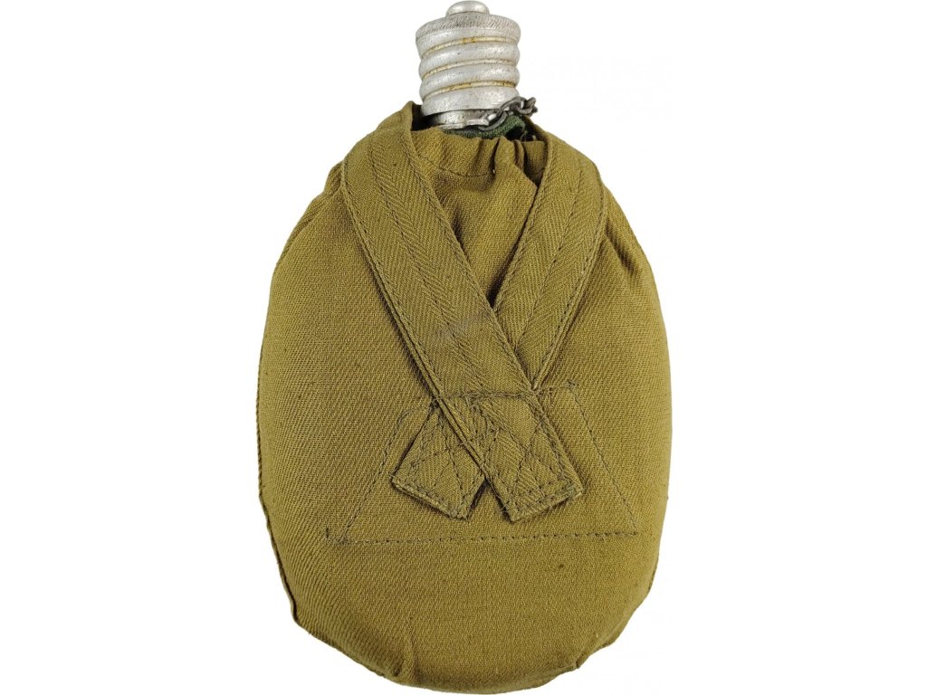 Autentická polní láhev SSSR z roku 1953, používaná sovětskou armádou v poválečných letech a během studené války. Jedná se o klasickou sovětskou čutoru vyrobenou z hliníku s objemem přibližně 750 ml (3/4 litru) se šroubovacím víčkem připevněným řetízkem. Hliníková varianta šedé barvy bez vnějšího zeleného nátěru.