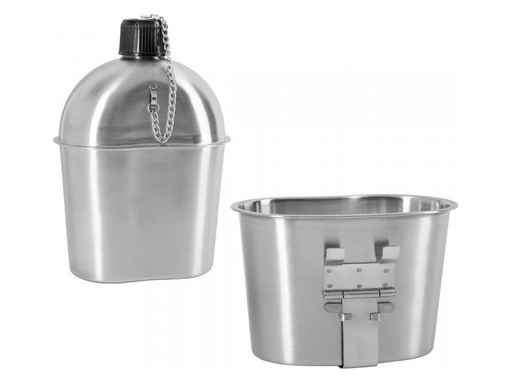 Nová a věrná reprodukce amerických "jídelen" (US M1910 Canteen with Cup) používaných americkou armádou od roku 1910 do 70. let 20. století. Tělo láhve a hrnku je lité z hliníku, určeného a certifikovaného pro styk s potravinami. Jídelna je vybavena černým plastovým uzávěrem z robustního Bakelitu, toto víčko je opatřeno vnitřním těsněním z gumy a ocelovým řetízkem, který lze v případě potřeby sundat. Součástí je také hliníkový hrnek M1910 se skládacím držadlem, sloužící jako jídelní ešus na potraviny a nápoje. Tvar čutory a hrnku je plně kompatibilní a perfektně do sebe zapadá, set se tak snadno vejde do plátěného obalu, který se nosí na perforovaném opasku US M36 Belt amerického nosného systému.