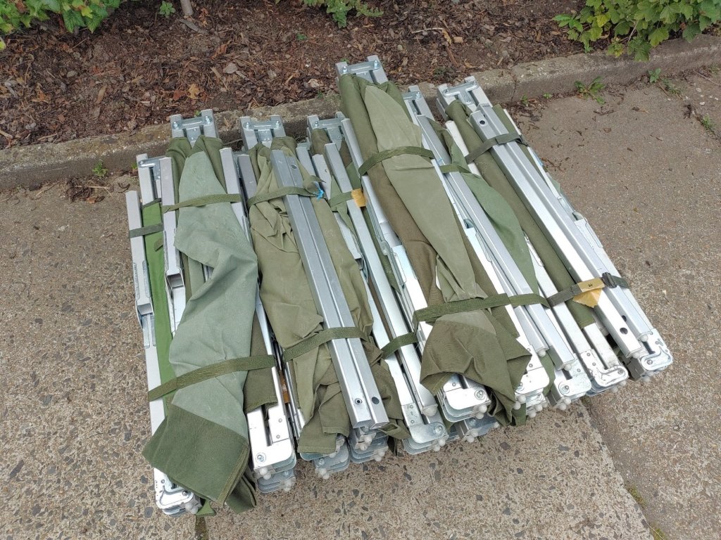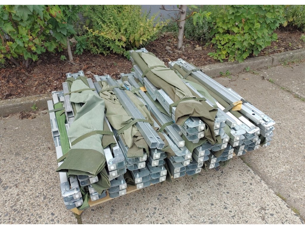 - Použité zboží (polní lůžka nesou stopy běžného používání a jsou celkově v dobrém stavu, mohou mít drobné oděrky a lehká znečištění, bez poškození a v provozuschopném stavu, různí výrobci, vyřazené z armádních zásob).