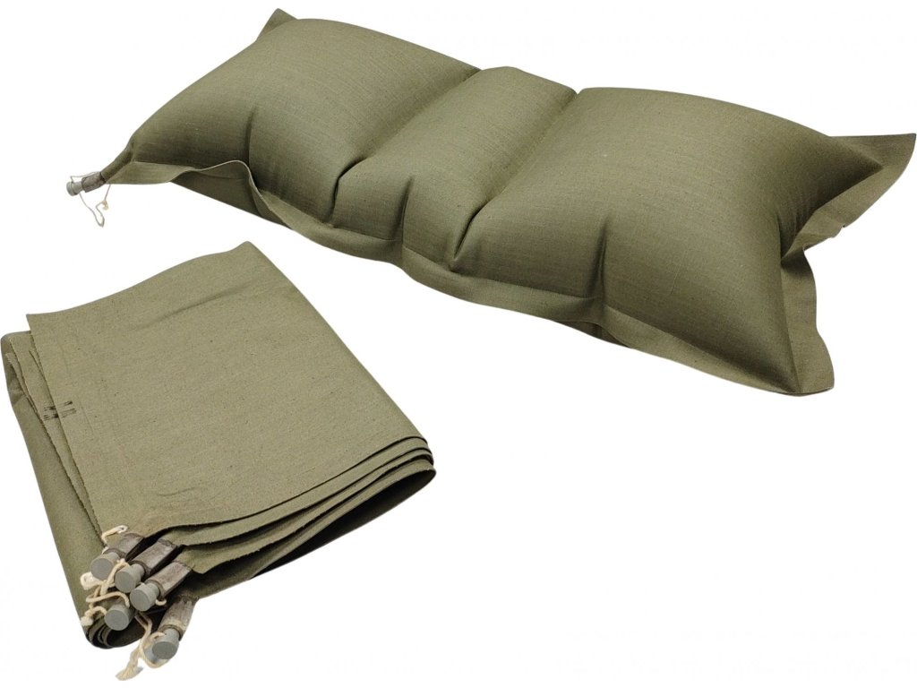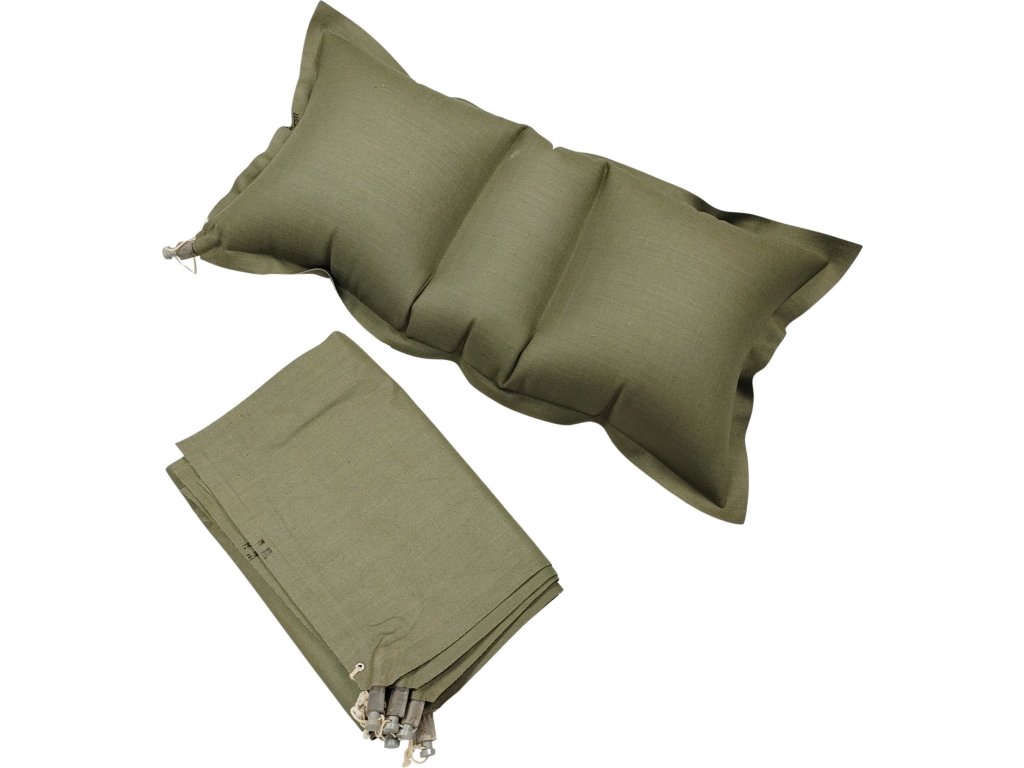 - Originální francouzský armádní nafukovací polštář se specifickou komorovou konstrukcí, zajištující komfortní spaní ve venkovním prostředí.