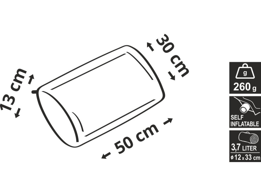 - rozměry 50 x 30 cm a výška 13 cm, dělají z polštáře pohodlný a příjemný doplněk pro kempování/camping, zejména při přenocování ve spacím pytli