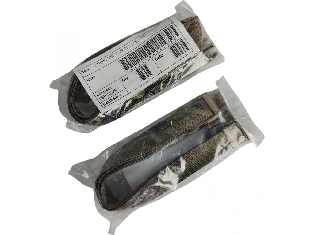Zcela nové vydání PLCE Side Pouch Strap vyrobený ze silného tkaného MTP popruhu. Tento popruh, který se používá v párech, rychle přemění standardní boční kapsy a další komponenty PLCE na zip na praktický hlídkový balíček. Prodává se po jednotlivcích popruzích. Pocházející z originální výstroje Spojeného království Velké Británie.