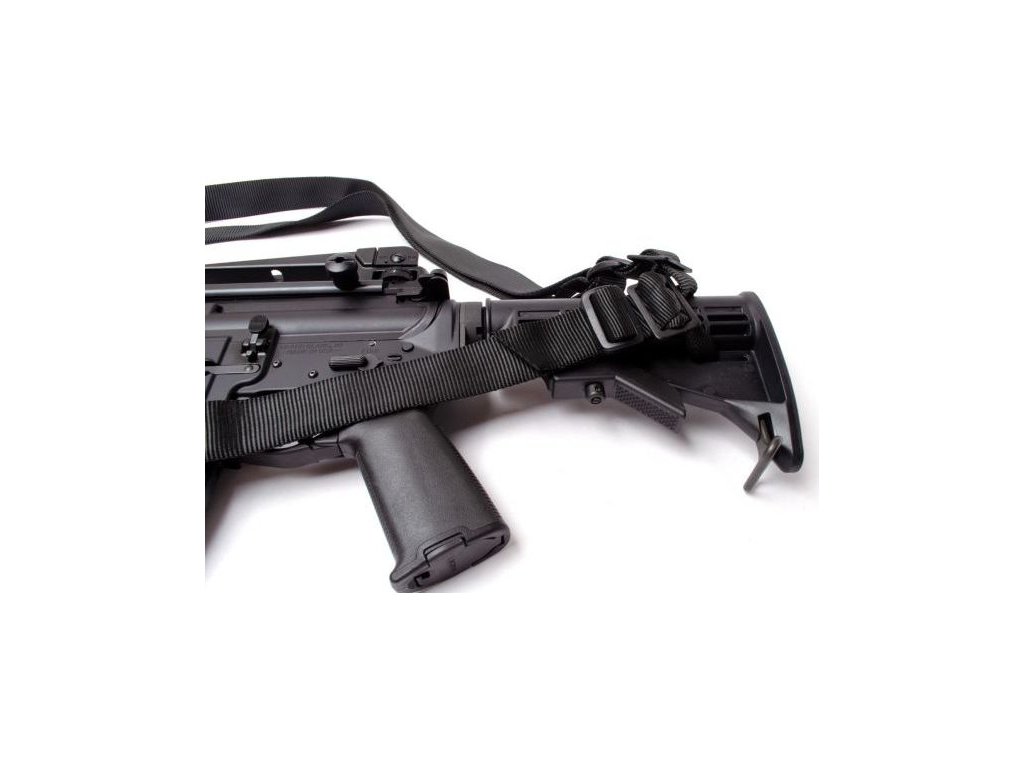 - 3-bodový taktický popruh Alpha CQB je zcela oboustranný, a lze připevnit buď k puškám s pevnou pažbou (M16A2/A4) nebo skládacím puškám (M4/M4-MWS). Bez použití jakéhokoli nářadí.