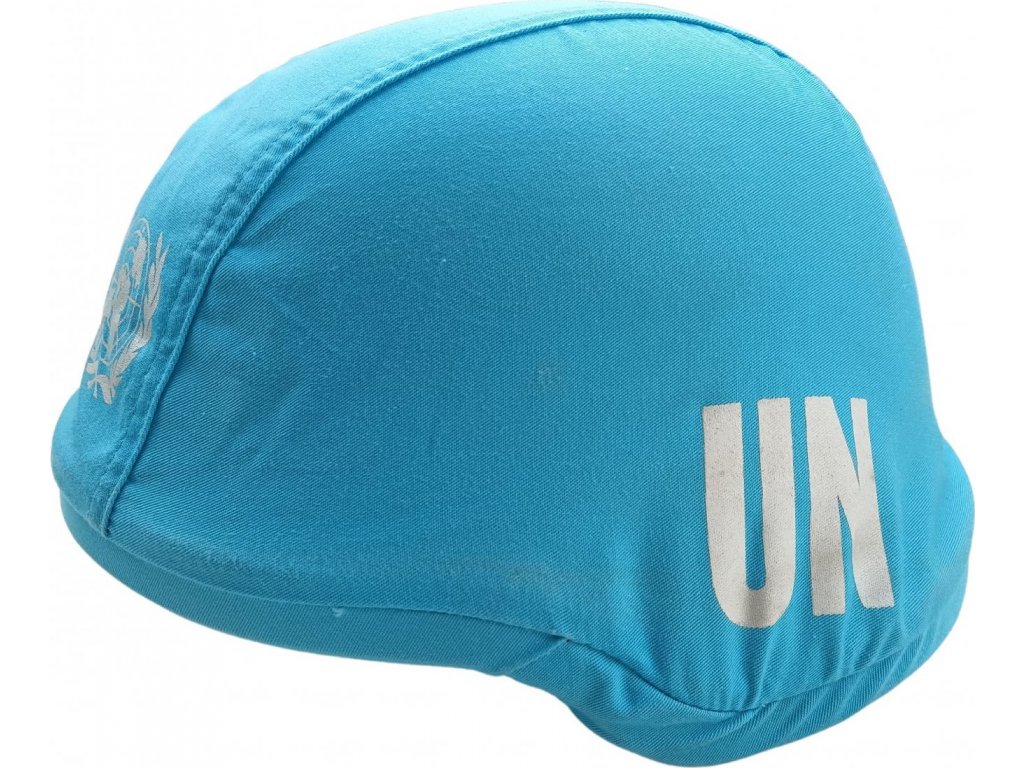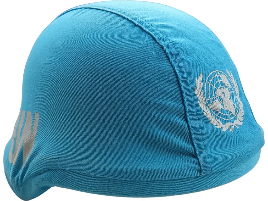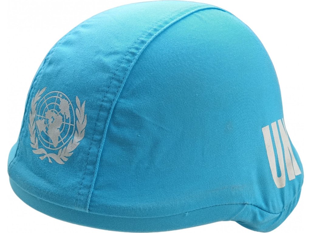 Tento originální potah na kevlarovou helmu pochází z výstroje nizozemské armády a byl používán při misích OSN – UNPROFOR. Vyrobený z odolné látky ve světle modré barvě, která je charakteristická pro jednotky Organizace spojených národů.