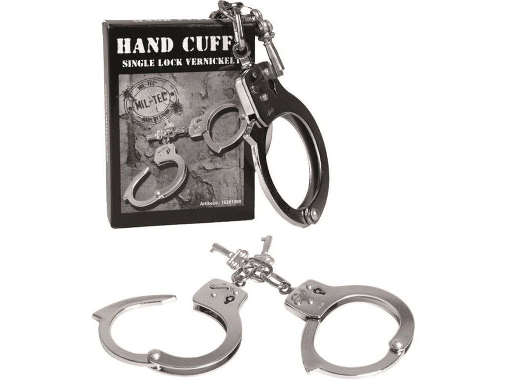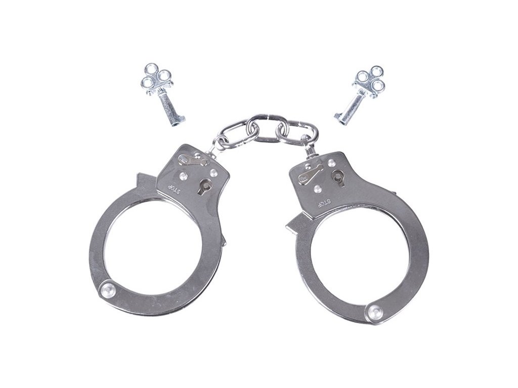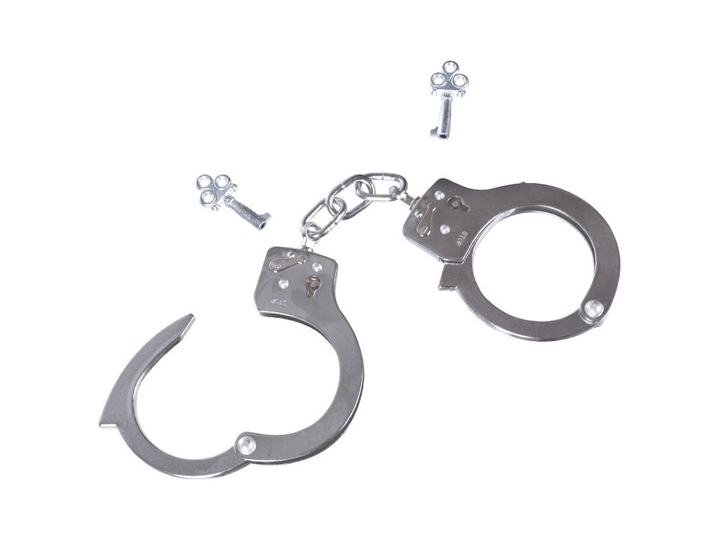 - Ocelová řetízková, zaklapávající pouta na obě ruce v chromové úpravě.