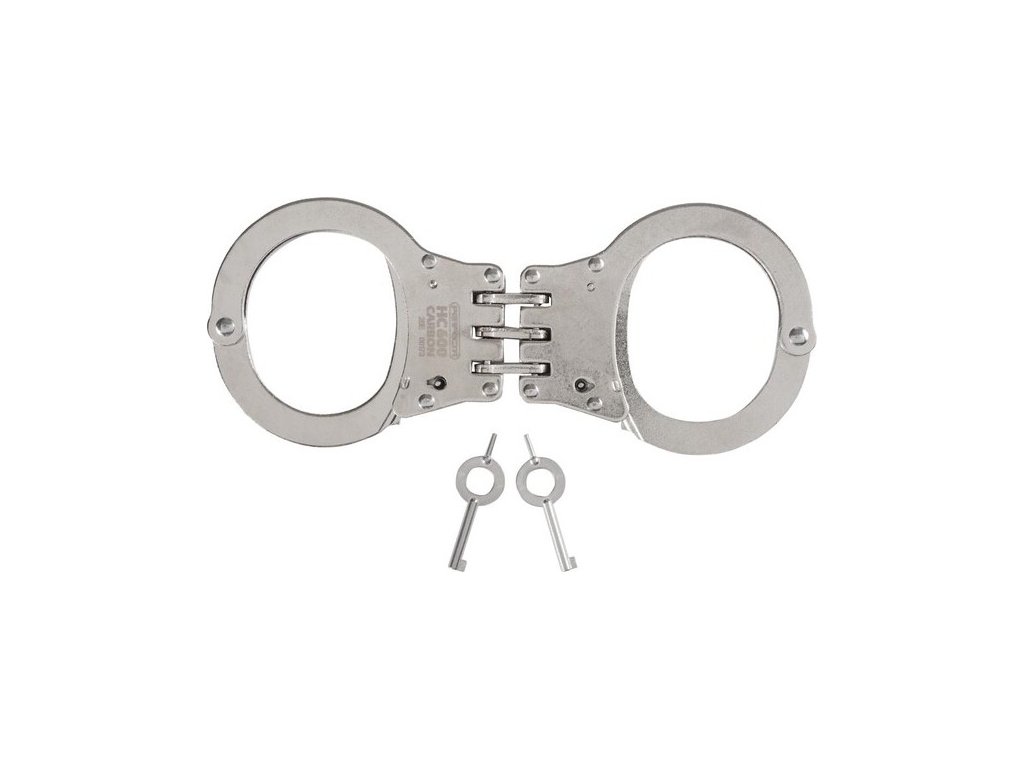 - ocelová zaklapávající pouta na obě ruce v barvě niklu