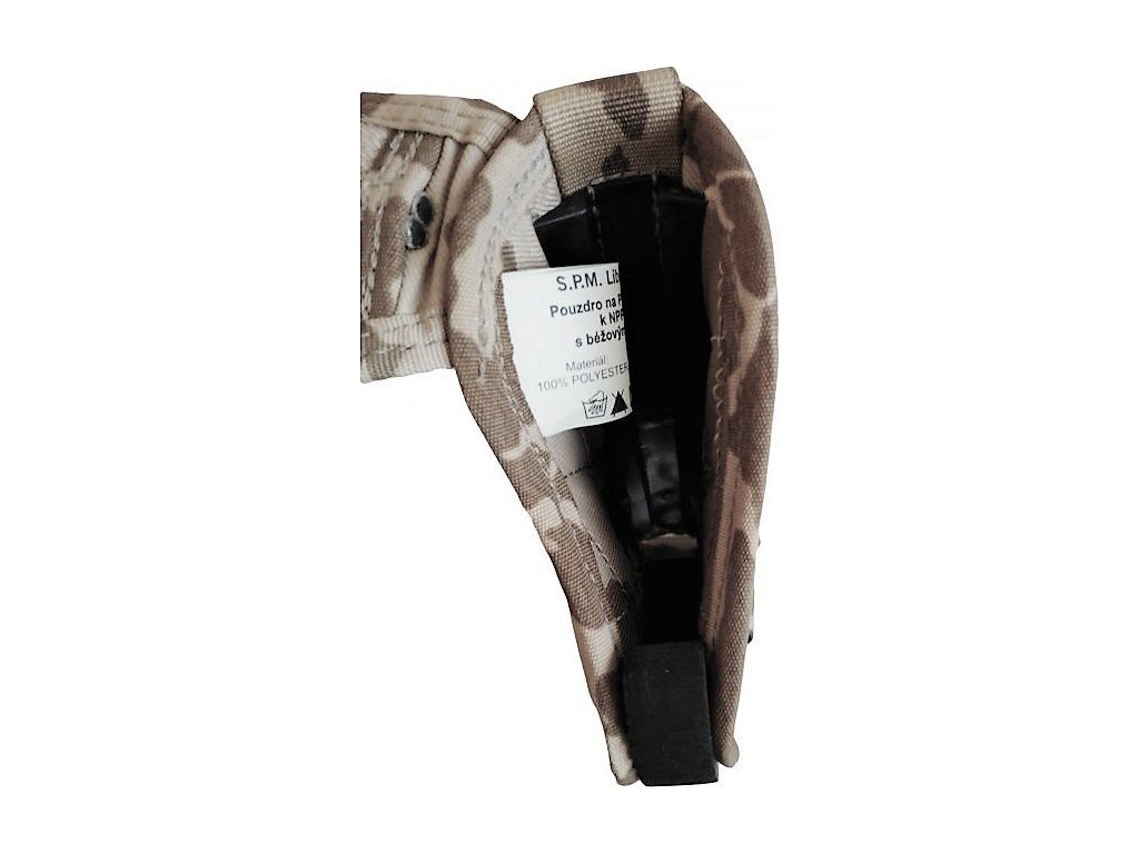 Profesionální vojenské pouzdro na pistoli CZ 75 (ČZ 75, Vz. 85, Vz. 52, Berreta, atd..) pro pravostranné používání. Navrženo k připevnění k nosnému systému na NPP 2006 (nosič pancéřových plátů), nebo k předchůdci systému MNS-2000 Armády České republiky. Ve světlém pouštním maskování vzoru 95, a to včetně popruhů (modernější varianta). Zbraň v pouzdře skvěle zapadne a je bezpečně zajištěna překlápěcí klopou pro diskrétní, skryté nošení. Prvotřídní materiály a vysoká kvalita zpracování českého výrobce SPM-Liberec.