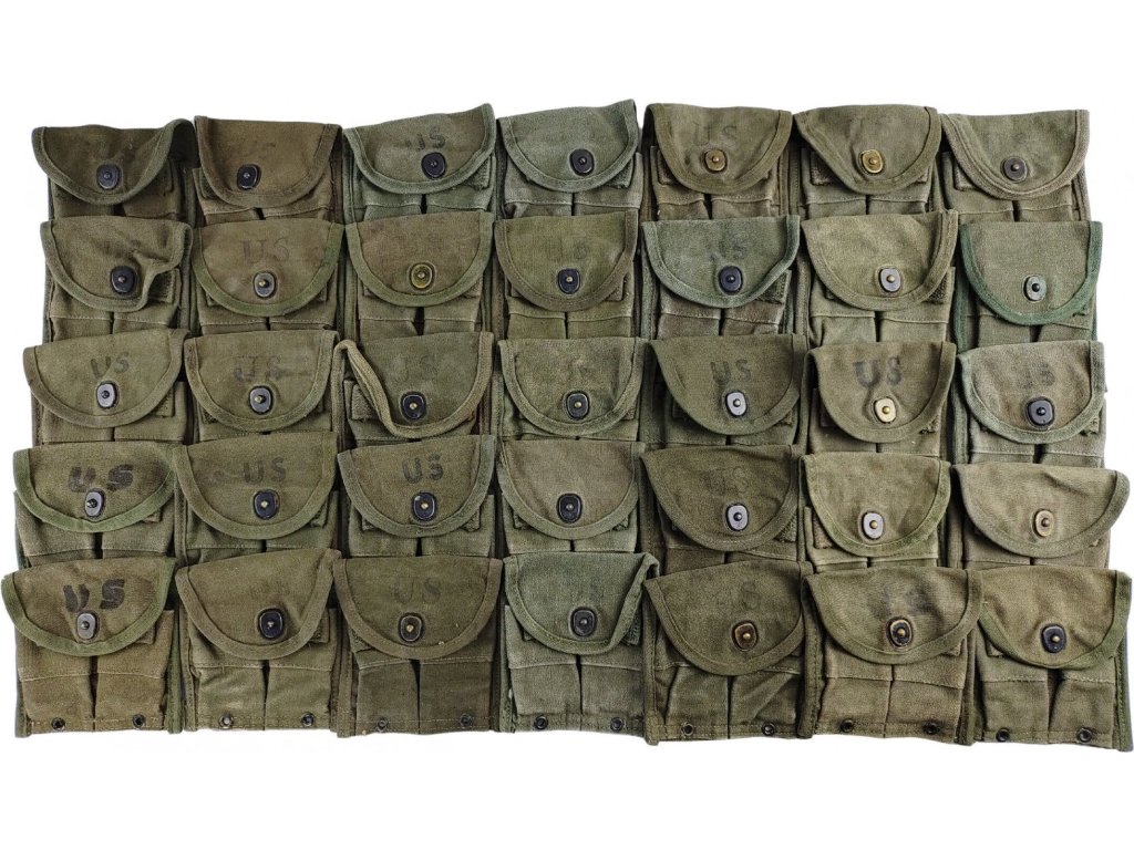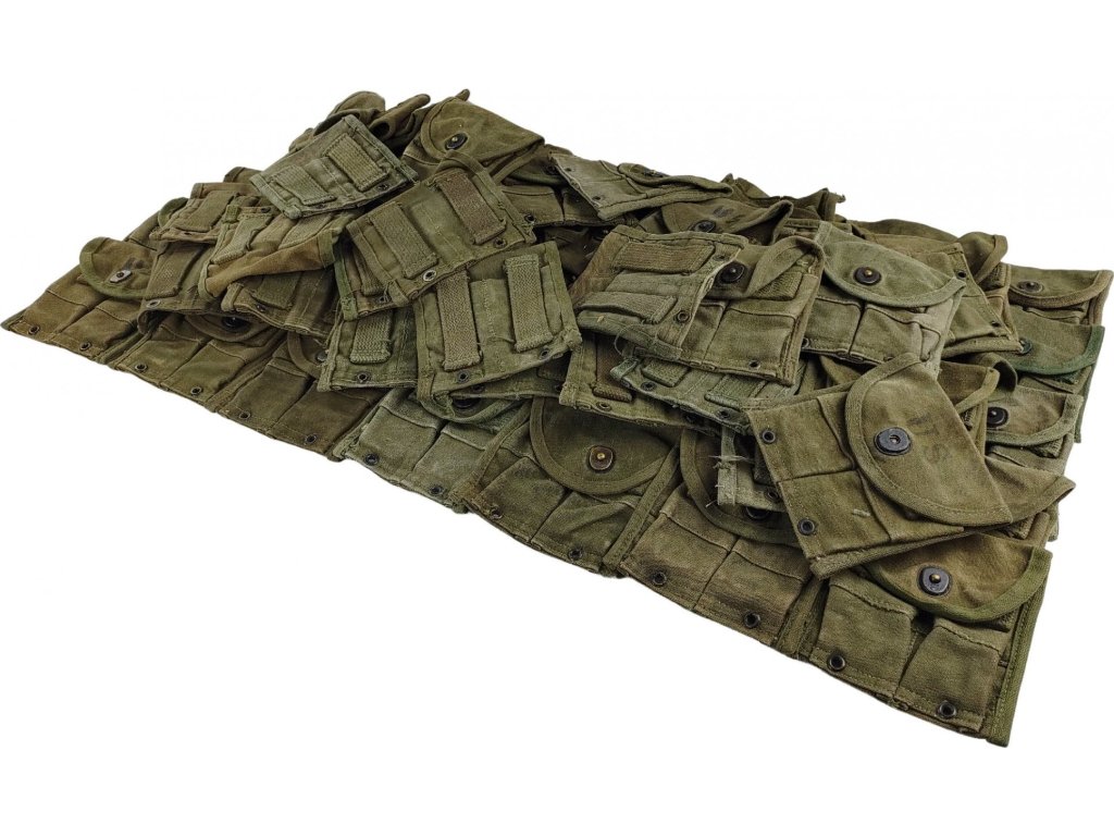 Armádní muniční sumka k uložení dvou 15-ranných zásobníků karabiny M-1. Vyrobena v USA z poctivého bavlněného plátna olivově zelené barvy.