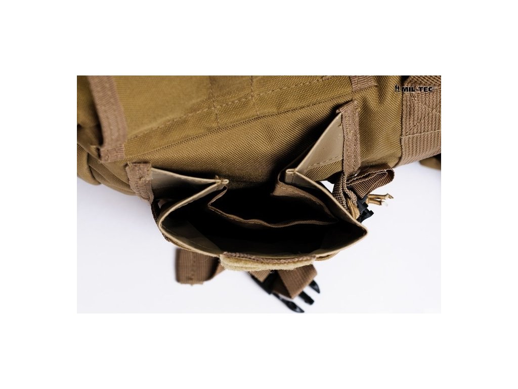 Hlavní komora se dvěma velkými kapsami (např. na náboje) uzavíratelná pevným zipem. Menší komora na samopal (např. MP5) se dvěma vyztuženými kapsami (např. na zásobníky a náboje) uzavíranými suchým zipem. Navíc na klopě menší přepážky 25 mm popruh MOLLE pro připevnění dalších nádob. Na vnější straně tři funkční a prostorné kapsy/nádoby/kapsy na zásobníky, vybavení, čistící hadříky a čistící tyče nebo štíty. Přední část je navíc lemována 25 mm popruhem MOLLE. Celek se uzavírá pevnými oboustrannými zipy s těsnícím pruhem.