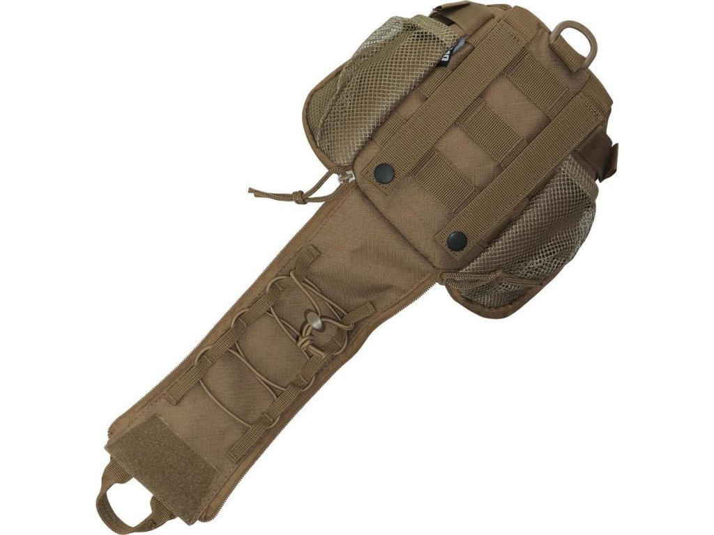 - Uchycení pomocí univerzální upínací vazby systému Molle (2x3) na dva upevňovací pásky s drukem a plastový D-kroužek.