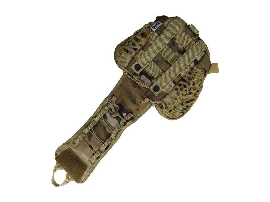 - Uchycení pomocí univerzální upínací vazby systému Molle (2x3) na dva upevňovací pásky s drukem a plastový D-kroužek.