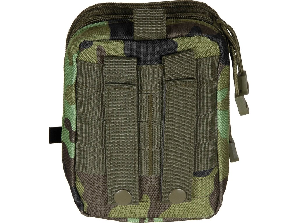 - Univerzální upínací systém MOLLE/PALS: Na přední a zadní straně tašky jsou MOLLE poutka, která umožňují dodatečně připevnit příslušenství nebo připojit tašku k dalšímu vybavení.