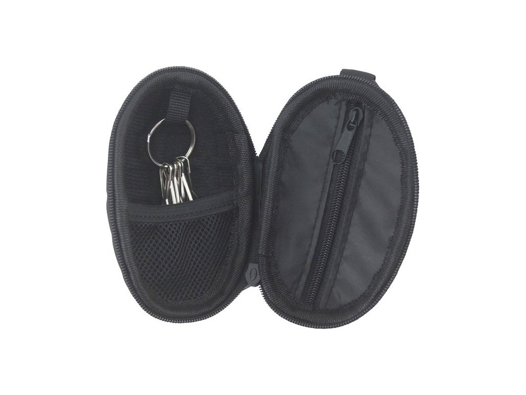 - Uvnitř pouzdra tři kovové háčky na klíče, síťovaná přihrádka, a další přihrádka na drobné se zapínáním na zip.