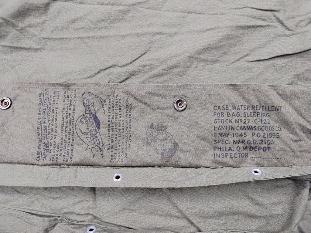 - CASE, WATER REPELLENT FOR BAG, SLEEPING (STOCK №27-C-123 HAMLIN CANVAS GOODS CO. 2 MAY 1945 P.O. 21895 SPEC. № P.Q.D.315A PHILA. Q.M. DEPOT).