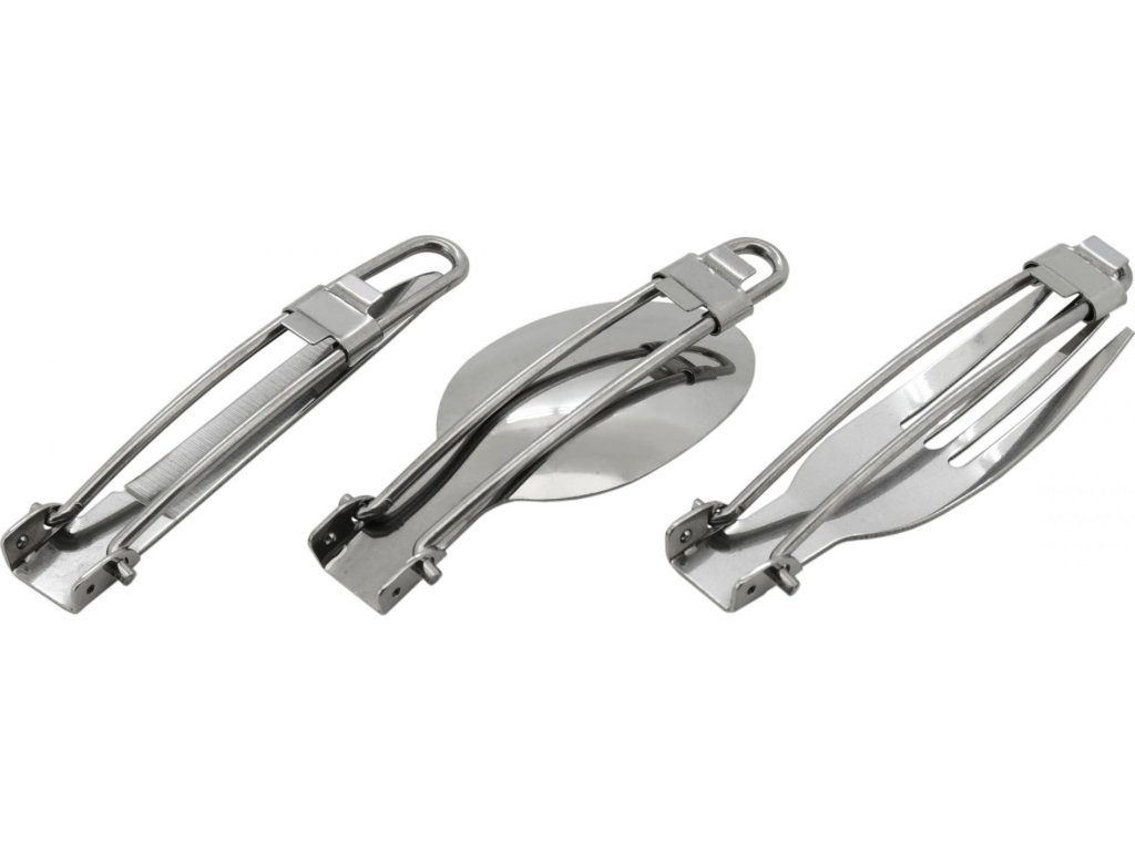 - Kompletnost: Sada obsahuje všechny základní příbory potřebné pro jídlo v terénu.