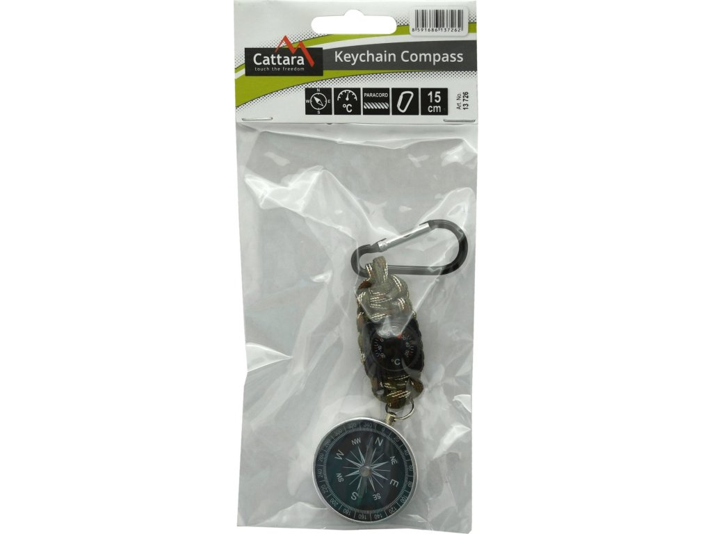 - Cattara® Keychain Pendant OUTDOOR Camo Paracord with thermometer and compass.