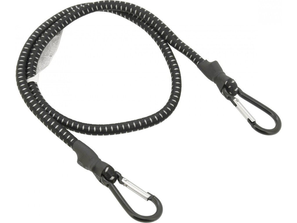 - Elastická šňůra je zakončena kovovými karabinami pro dokonalé a bezpečné upevnění.