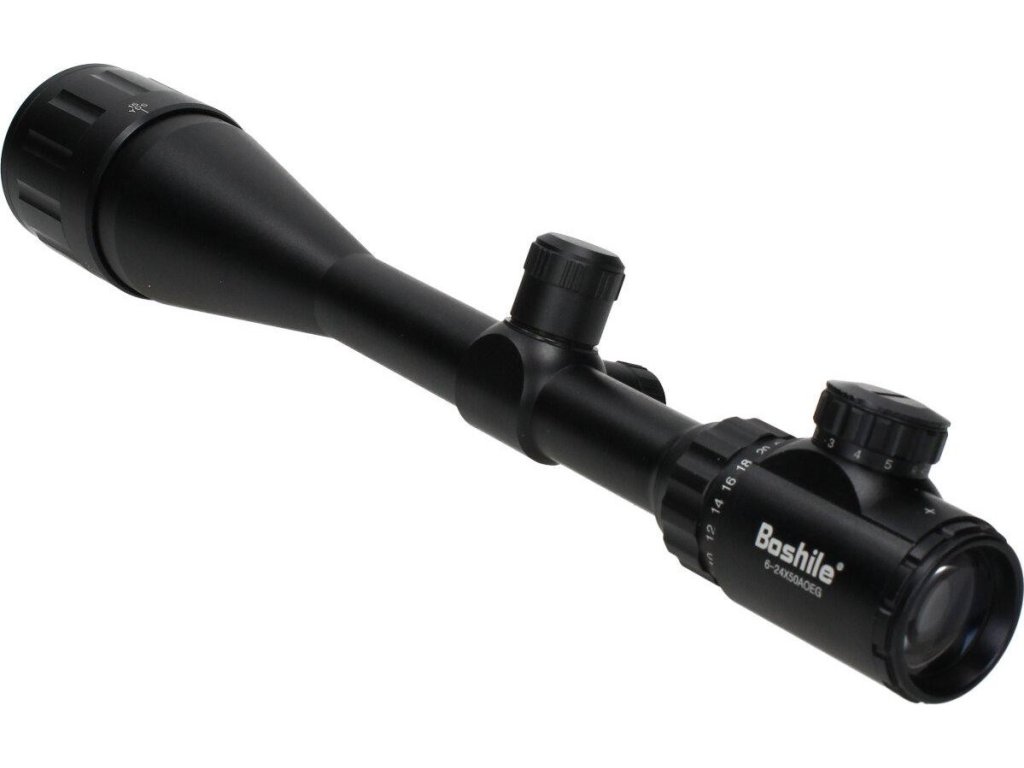 Puškohled 6-24 x 50 AOEG zoom Rifle Scope Boshile montáž 11 mm podsvícený kříž