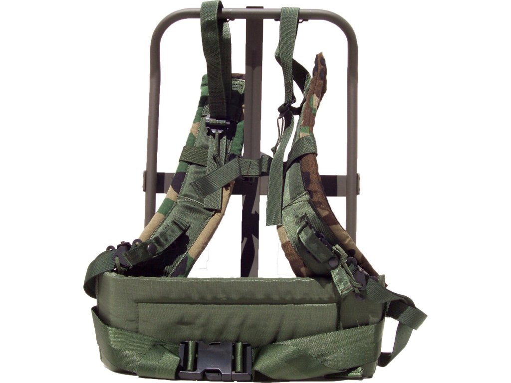 Americký nosný rám US LC-2 na batoh ALICE s polstrovanými popruhy Woodland a bederním pásem Fastex originál