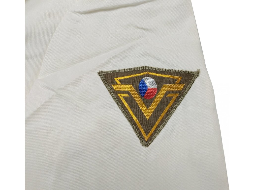 - Na levém rukávu je přišita rozlišovací trojúhelníková nášivka se znakem Československé lidové armády.