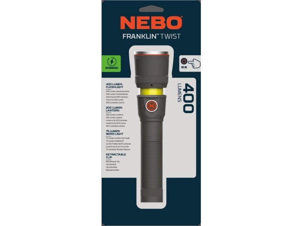 Ruční dobíjecí svítilna NEBO FRANKLIN™ TWIST 400 lumenů NEB-FLT-0024-G