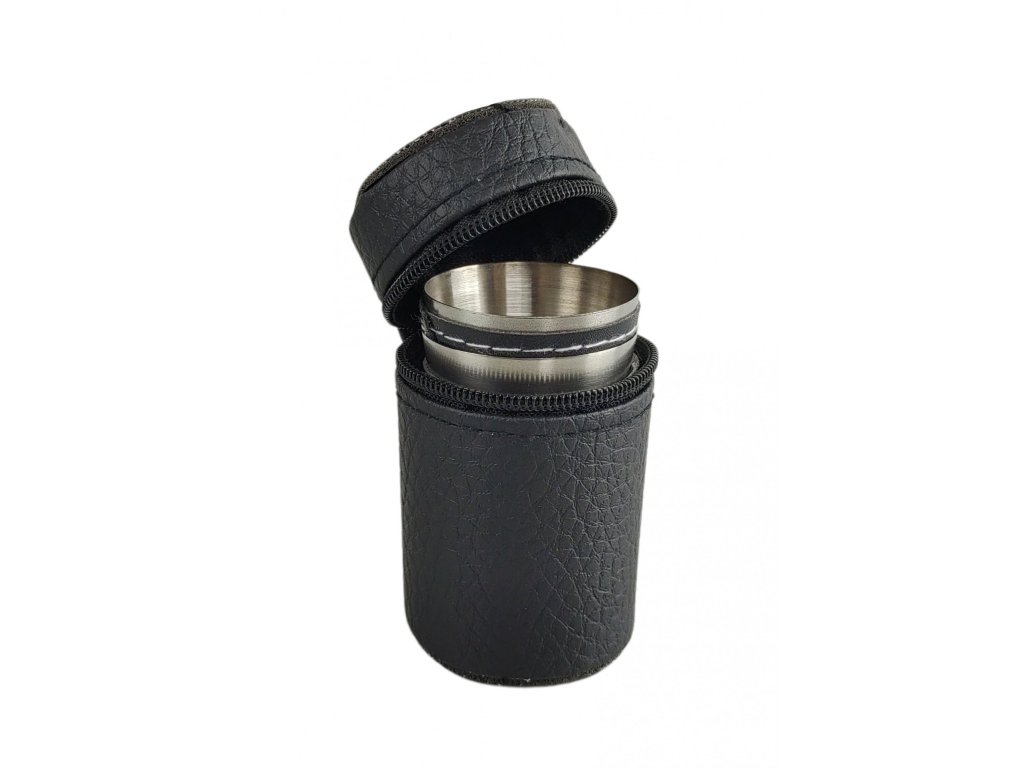 Sada hrnků s koženým lemem 4 kusy nerez 30ml v pouzdře (cestovní panák)