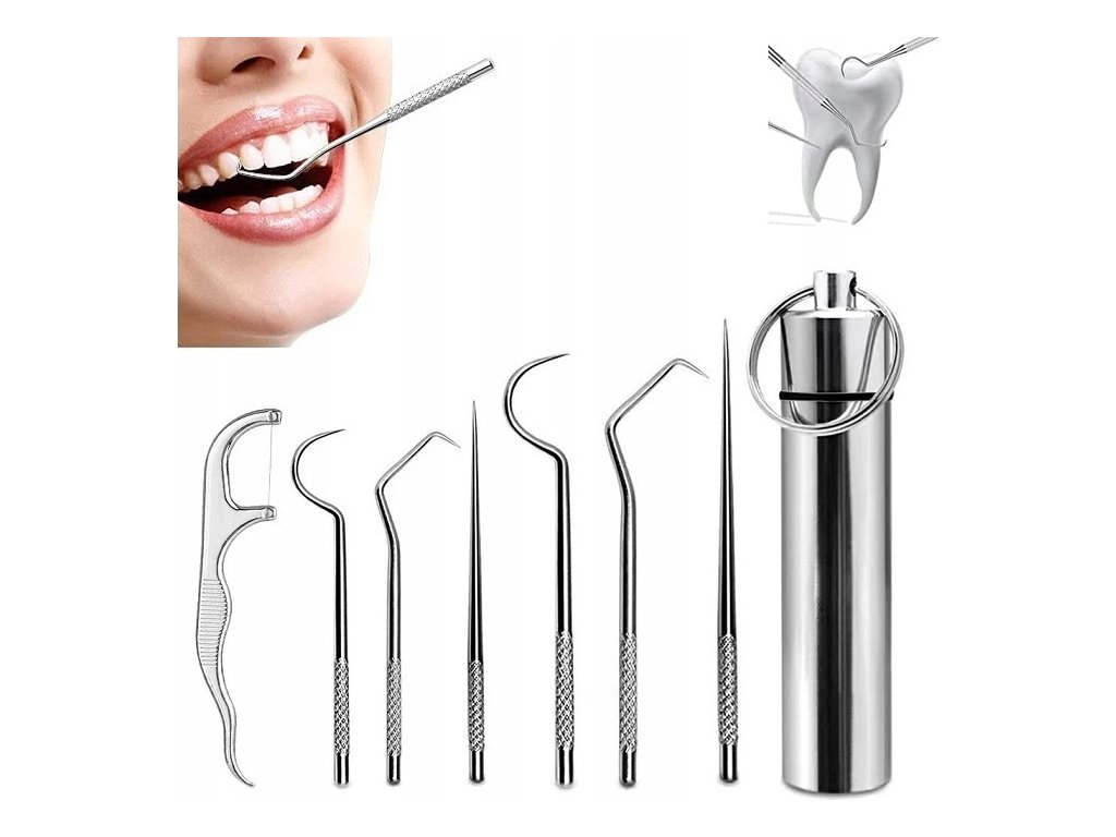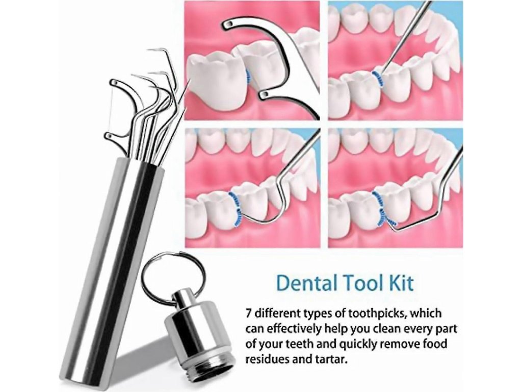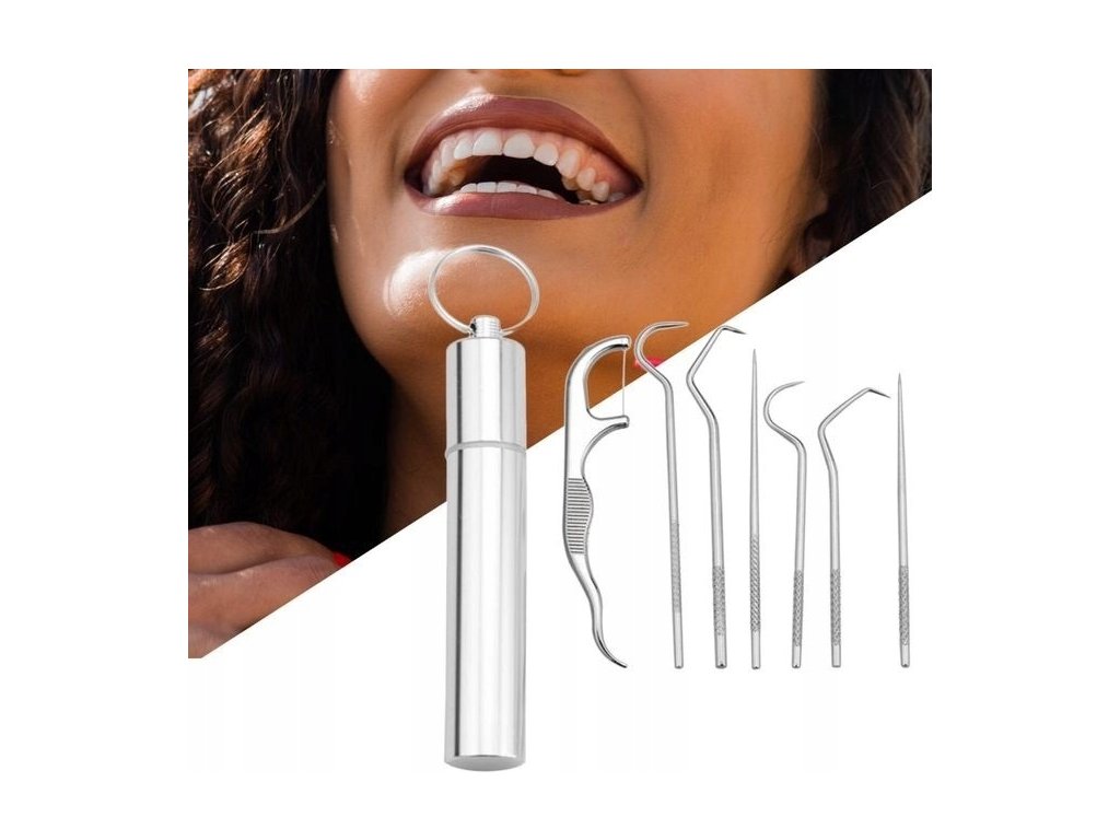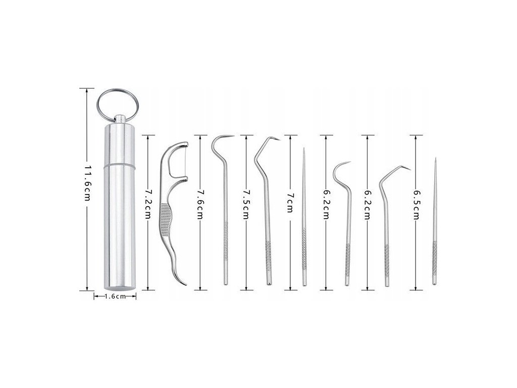 Sada párátek z nerezové oceli opakovaně použitelné 7 kusů cestovních nástrojů na ústní hygienu s pouzdrem na klíče