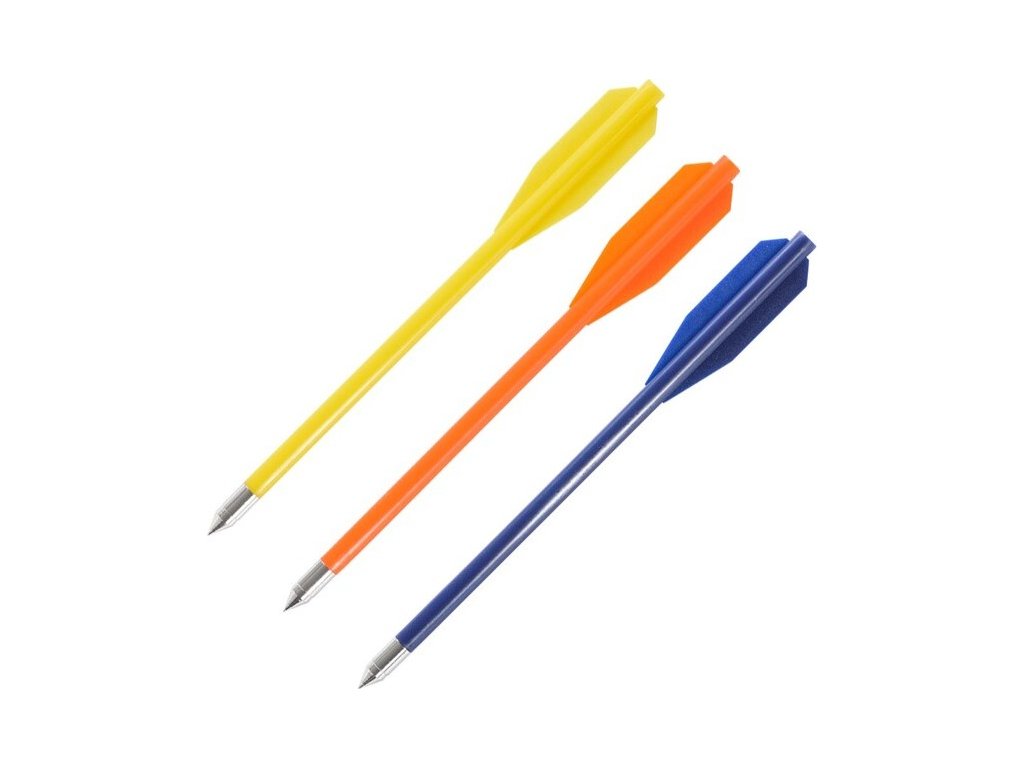 Náhradní plastové šípy s ocelovým hrotem Man Kung ve třech různých barvách. Šípy jsou vhodné do běžných pistolových kuší (Man Kung Alligator, Poe Lang/Ek-Archery Cobra 50/80 lbs apod.).
