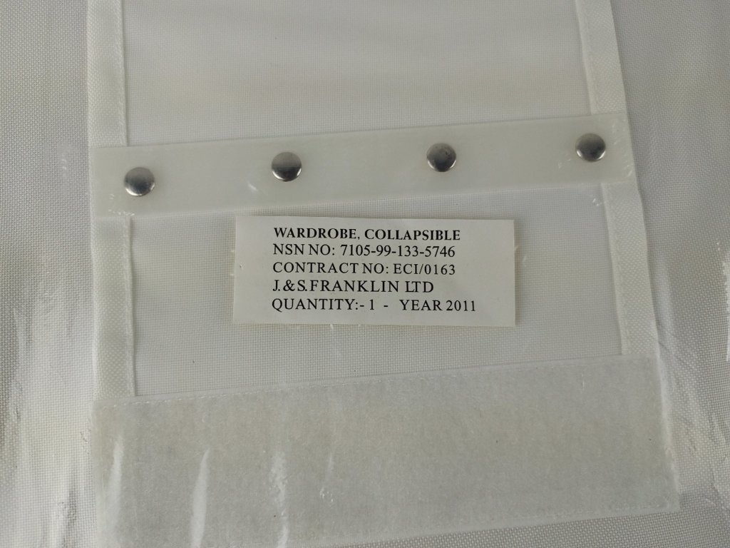Skládací šatní přihrádky / šatní organizér, originální vojenské vybavení britské armády. Nové, nepoužité, v původním igelitovém balení. V horní části závěs se suchým zipem pro snadné zavěšení/přichycení.