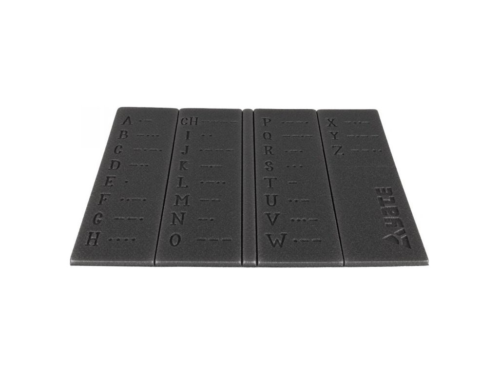 - Z jedné strany je sedátko doplněno vytlačenou Morseovou abecedou (obecně Morseovkou).