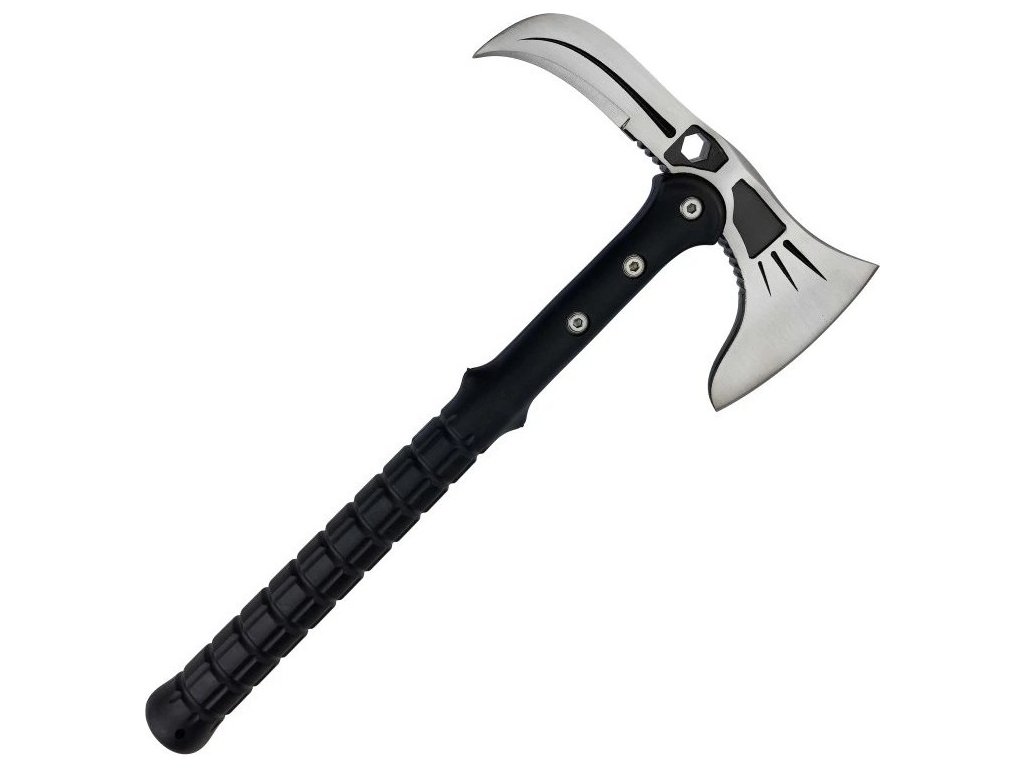 - Tomahawk: Celkový tvar a design je charakteristický pro moderní taktické tomahawky, které kombinují sekeru se zahnutým hrotem.