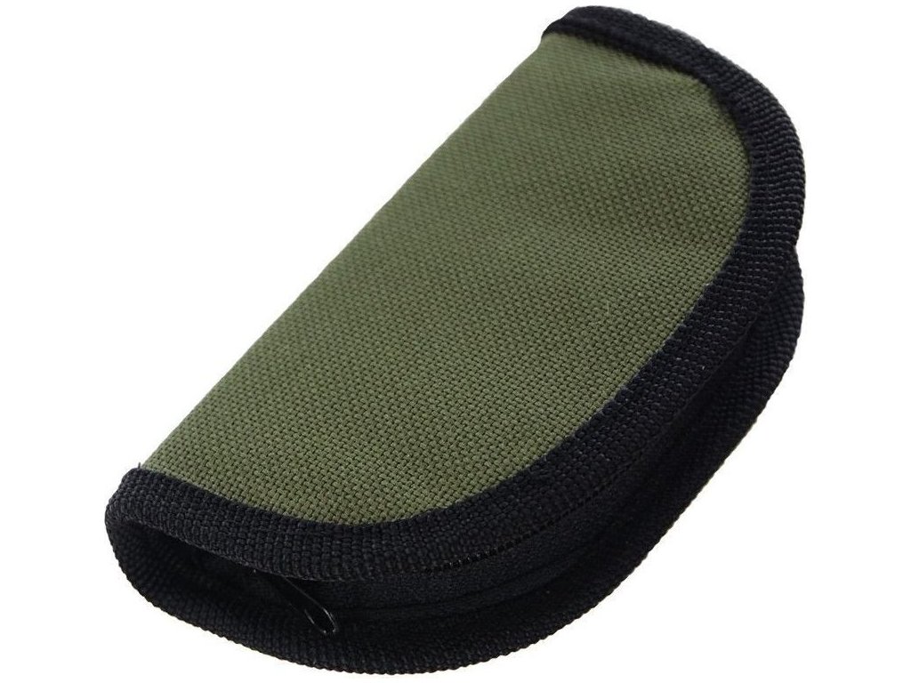 Pouzdro je olivové barvy lemované černou lemovkou.