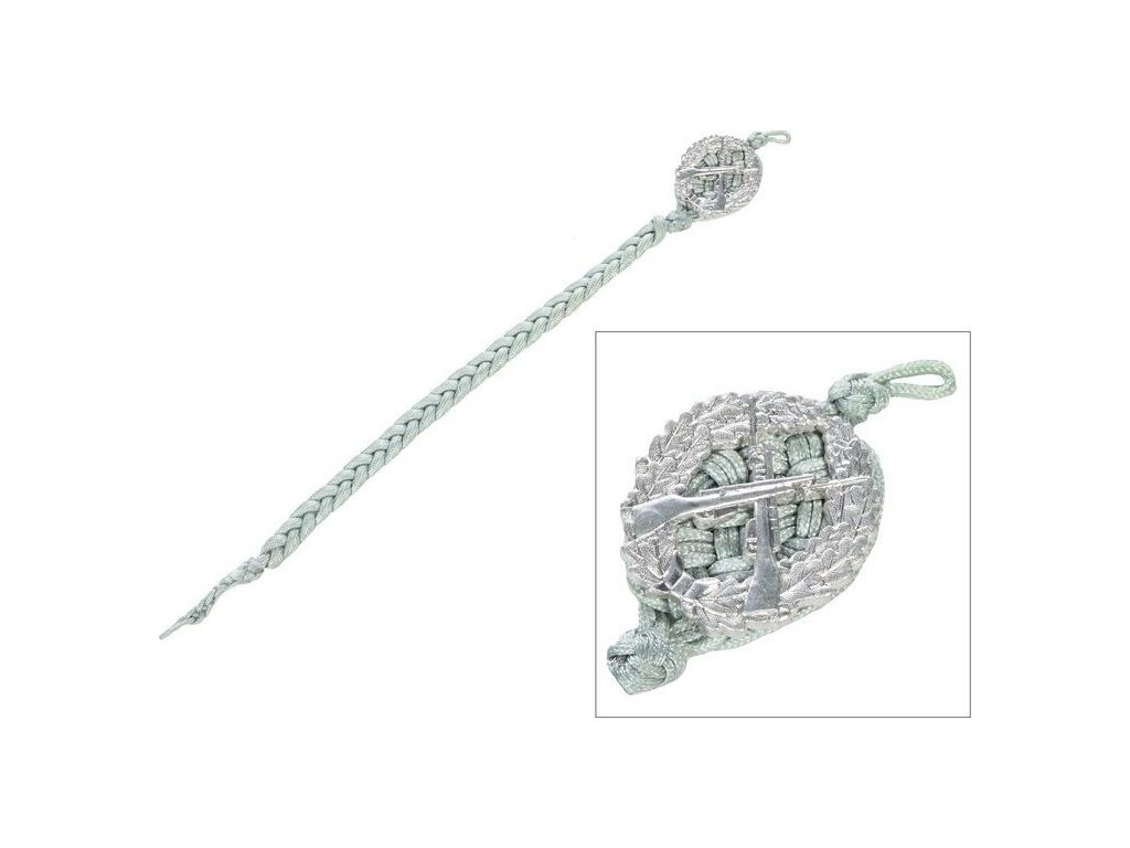 - kvalitní, zdobená slavnostní šňůra s kovovým odznakem motivu dvou zkřížených pušek na vavřínovém listí