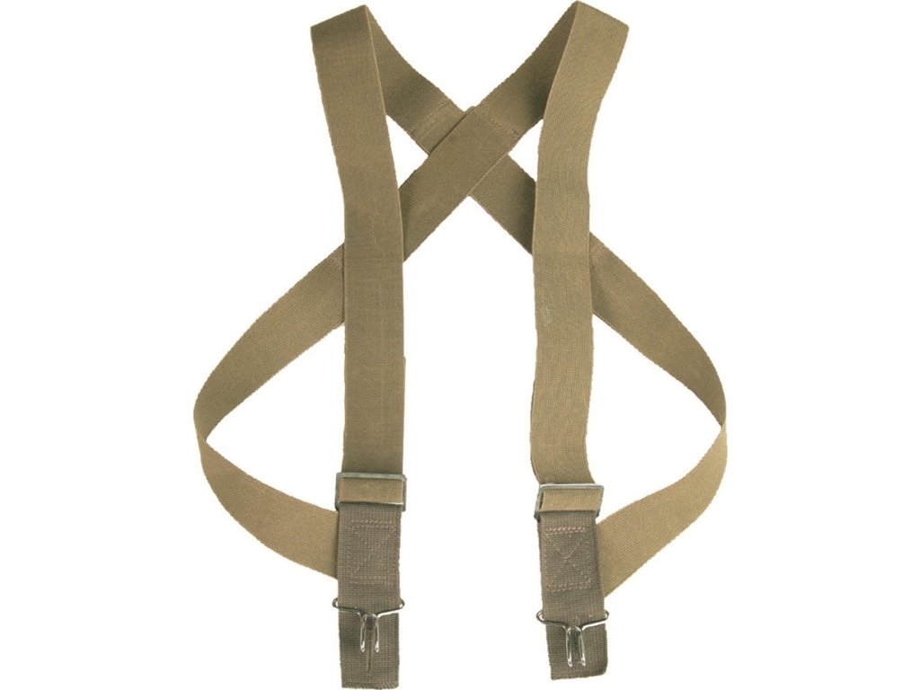 - Gumové kšandy vojenského stylu / elastické šle k přichycení za poutka nebo knoflíky většiny kalhot.