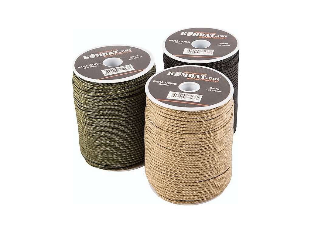 Šňůra padáková 3mm paracord 100m na cívce Kombat® Tactical Black černá