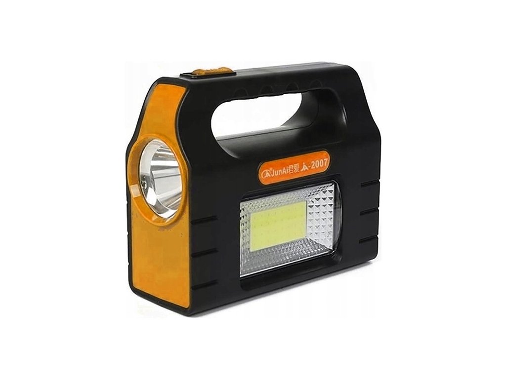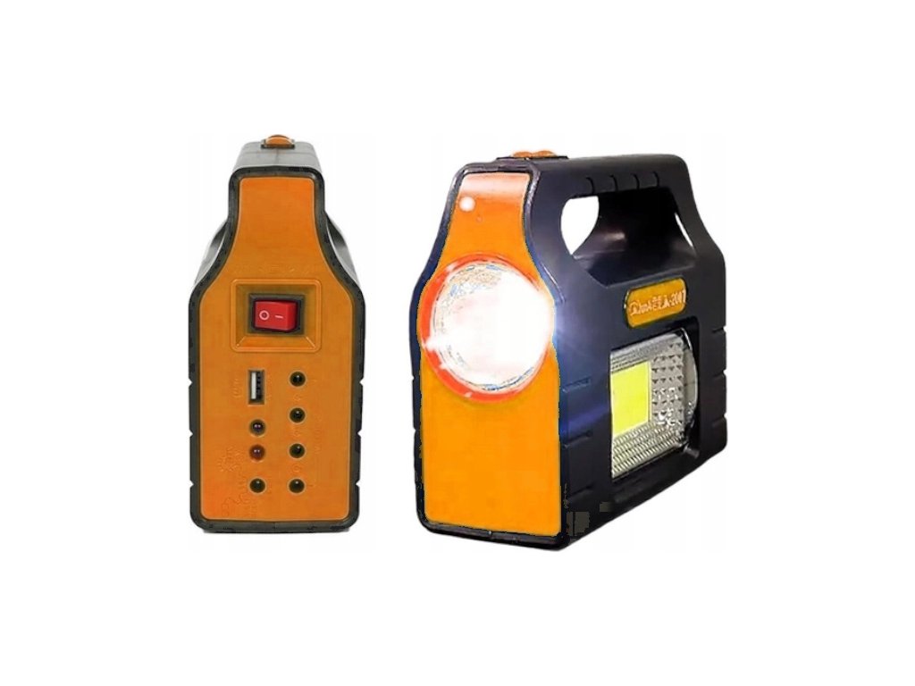 - Multifunkční akumulátorová svítilna se solárním dobíjením, obsahující navíc externí solární panel a dvě LED žárovky.