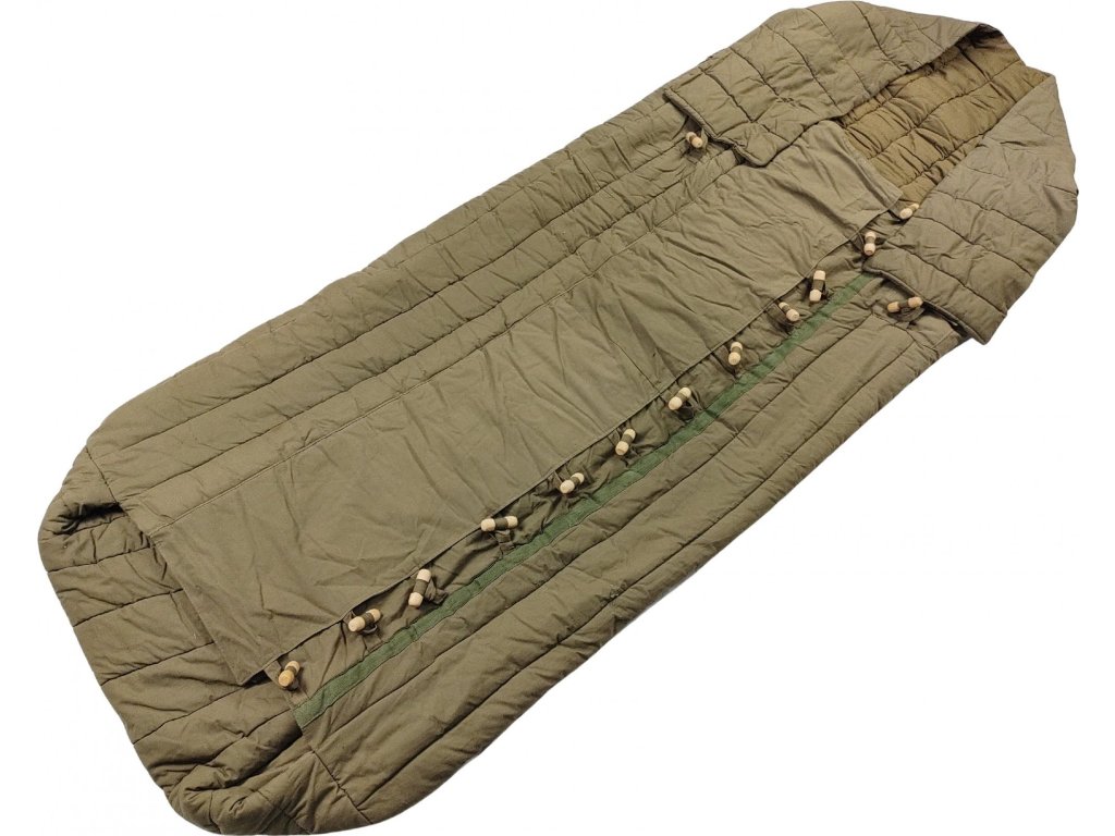 Odsunový spací pytel pro zraněné vojáky z vybavení Československé lidové armády (ČSLA). Originál vak - evakuační spacák pro zraněné. Tento spací pytel lze použít jako klasický spací pytel, ale vlivem své vyšší hmotnosti téměř 8 kilogramů je vhodný spíše do chaty a domácích zázemí. Plně rozložitelný, se zapínáním po celé přední délce na dřevěné olivky.