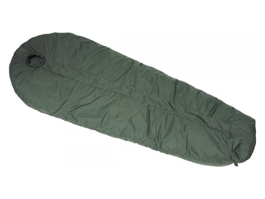 - Vojenská spací pytel tvaru mumie do středního klimatu.