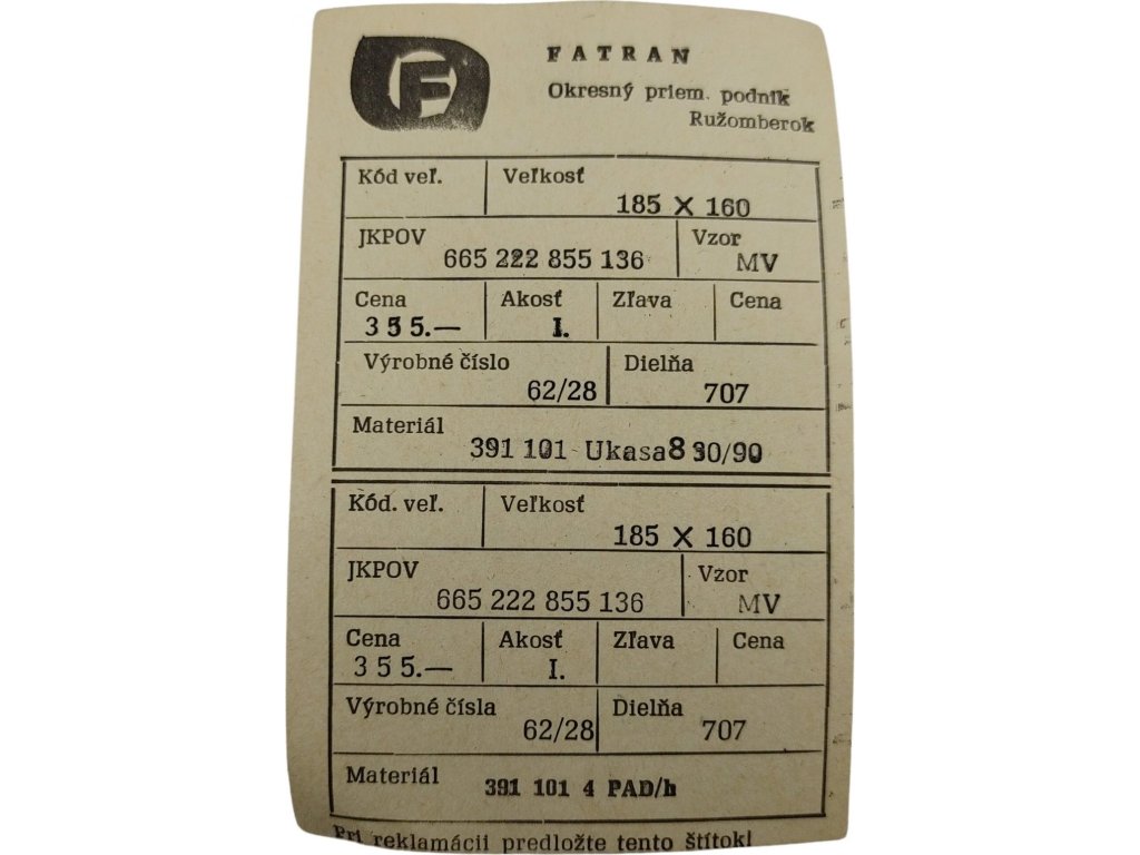 Výrobce: FATRAN výroba športových potrieb Rožumberok Hurbanova 3