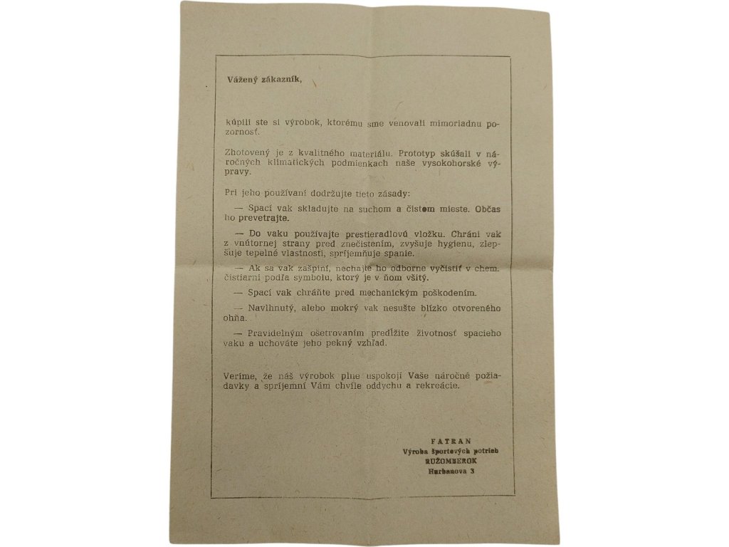 Spací pytel sportovní dekáč FATRAN Československo retro zelený