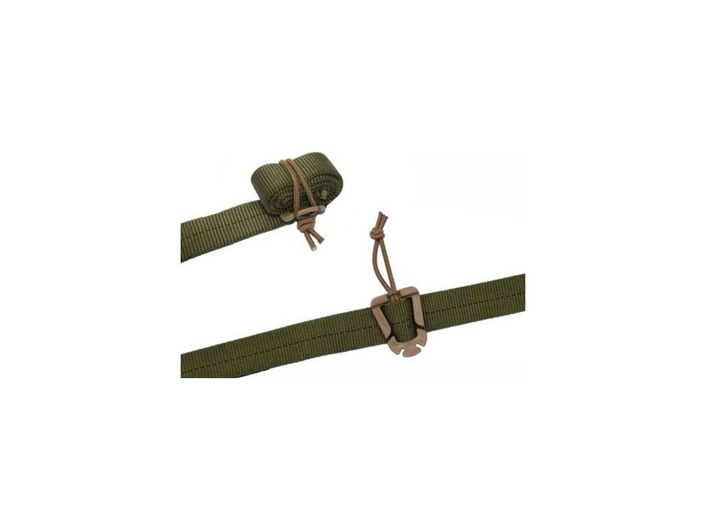 - spona se skládá z plastového úchytu na popruh a z pružné šňůry