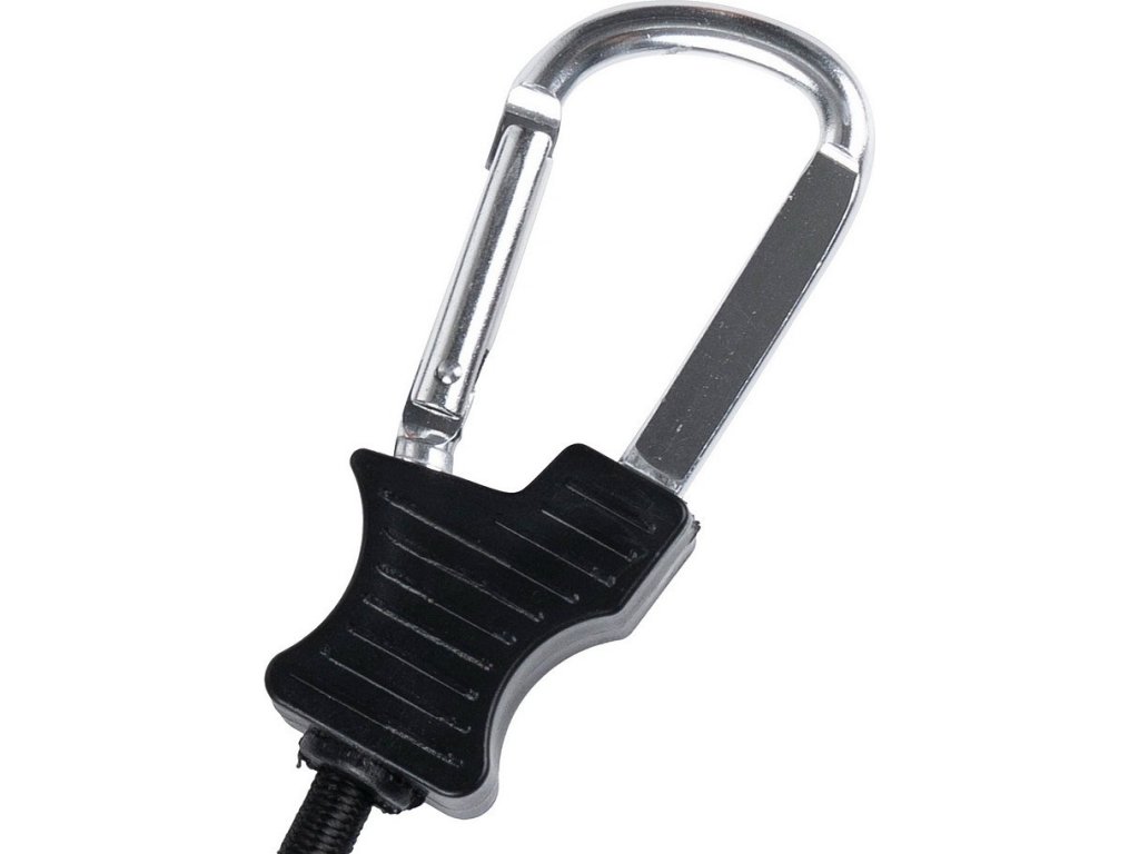 Silná guma nabízí flexibilitu a napětí, zatímco karabina zajišťuje bezpečné a snadné upevnění.