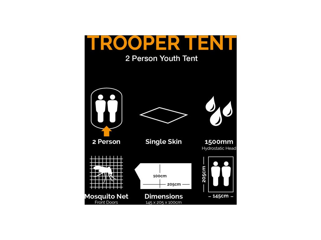 Trooper stan je praktický dvoučlenný stan, který je ideální pro volný čas, cykloturistiku, cyklistiku, venku, práci, rybaření, lov a také mnoho dalších aktivit. Nízká hmotnost a malé balení.
