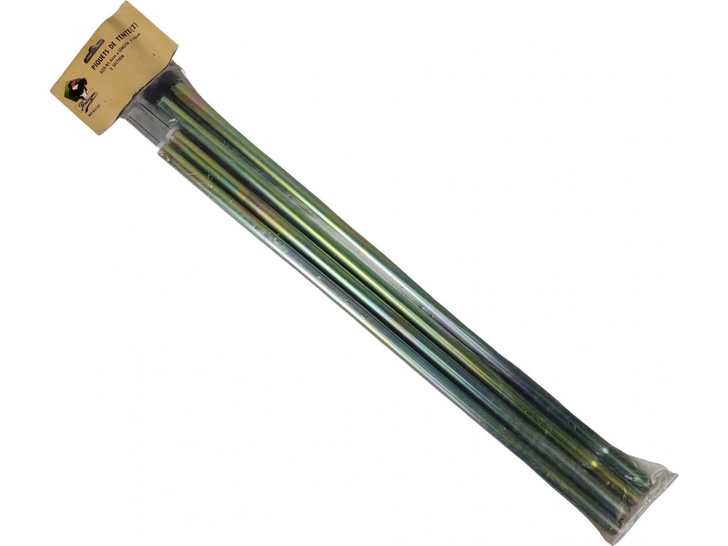 Tyče / nosný rám pro francouzský vojenský stan od značky Pentagone. Balíček obsahuje 2 kompletní tyče 110 cm délky (4 kusy v balení, připravené k sestavení). Vyrobeno z pozinkované oceli. Celková délka po sestavení: 110 cm + 5 cm kolík nahoře.