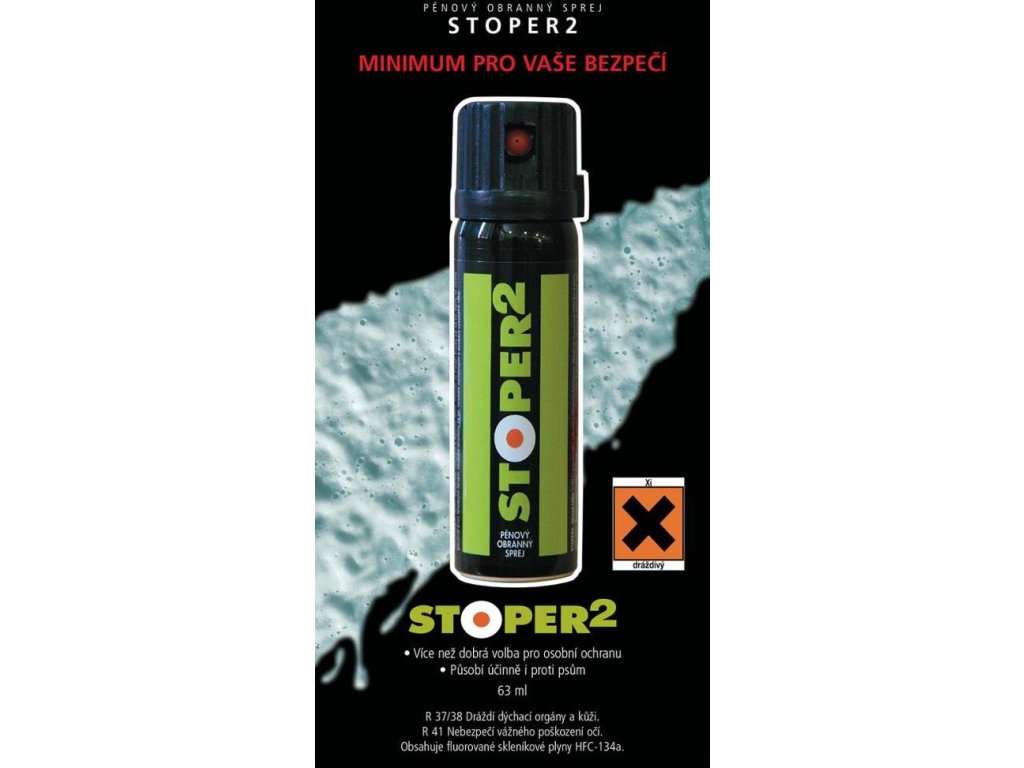 Pěnový obranný sprej STOPER2 – pěna 3. generace – je intenzivní proud pěny, méně citlivý na vítr zaručující vysokou pravděpodobnost zasažení útočníkovy tváře. Pěna na ní ulpí a postupně stéká. Do očí, nosu a úst se tak dostane mnohem větší množství účinné látky.
