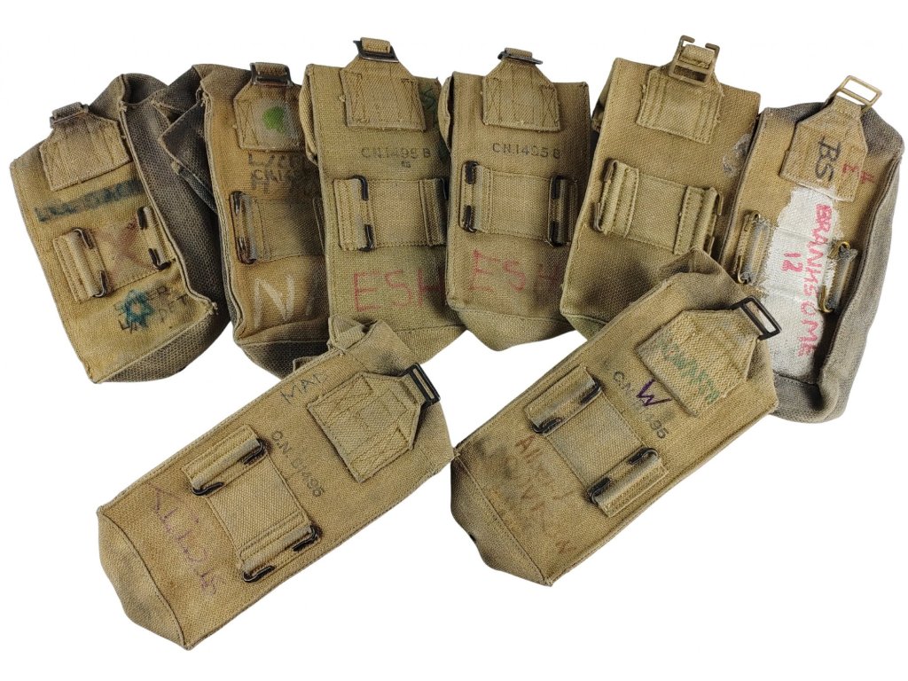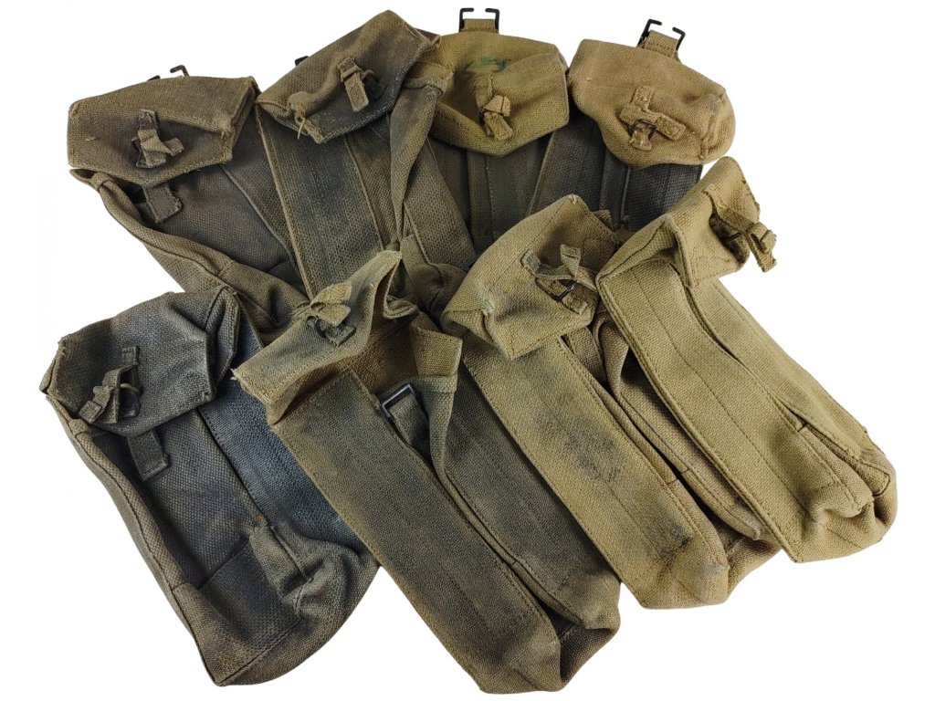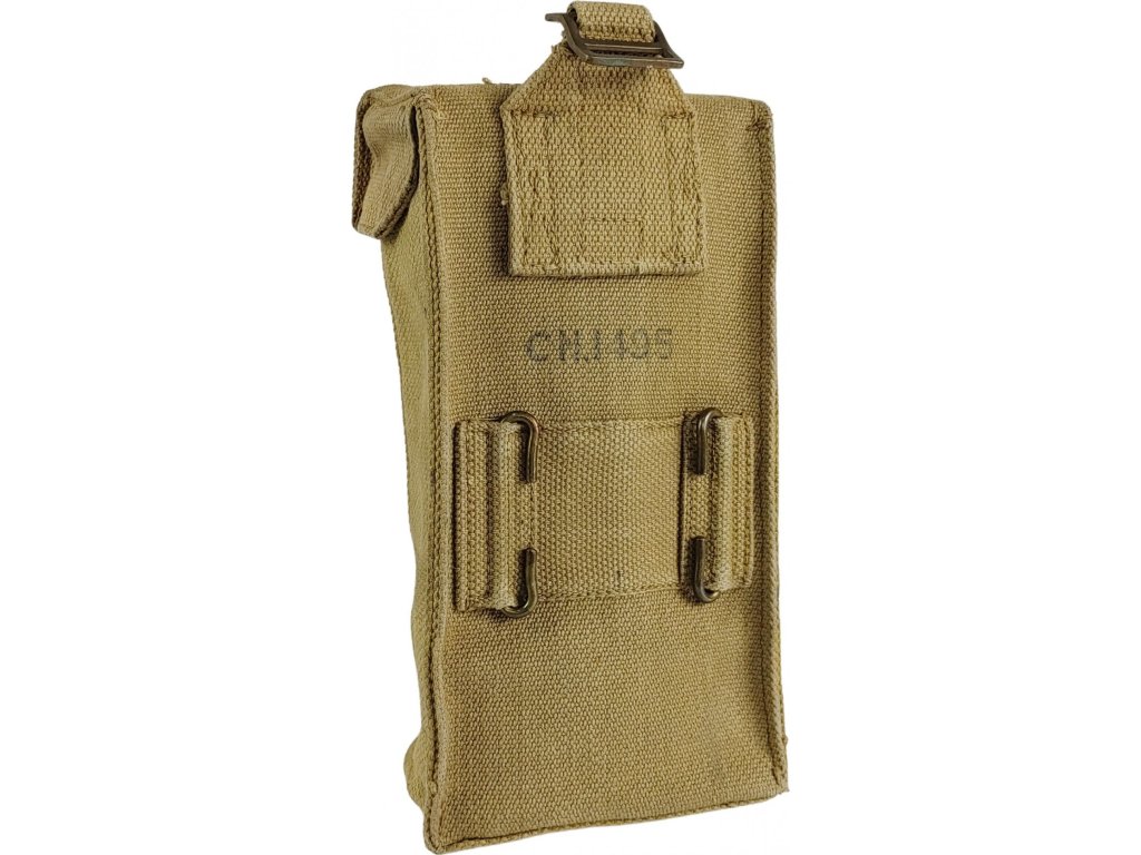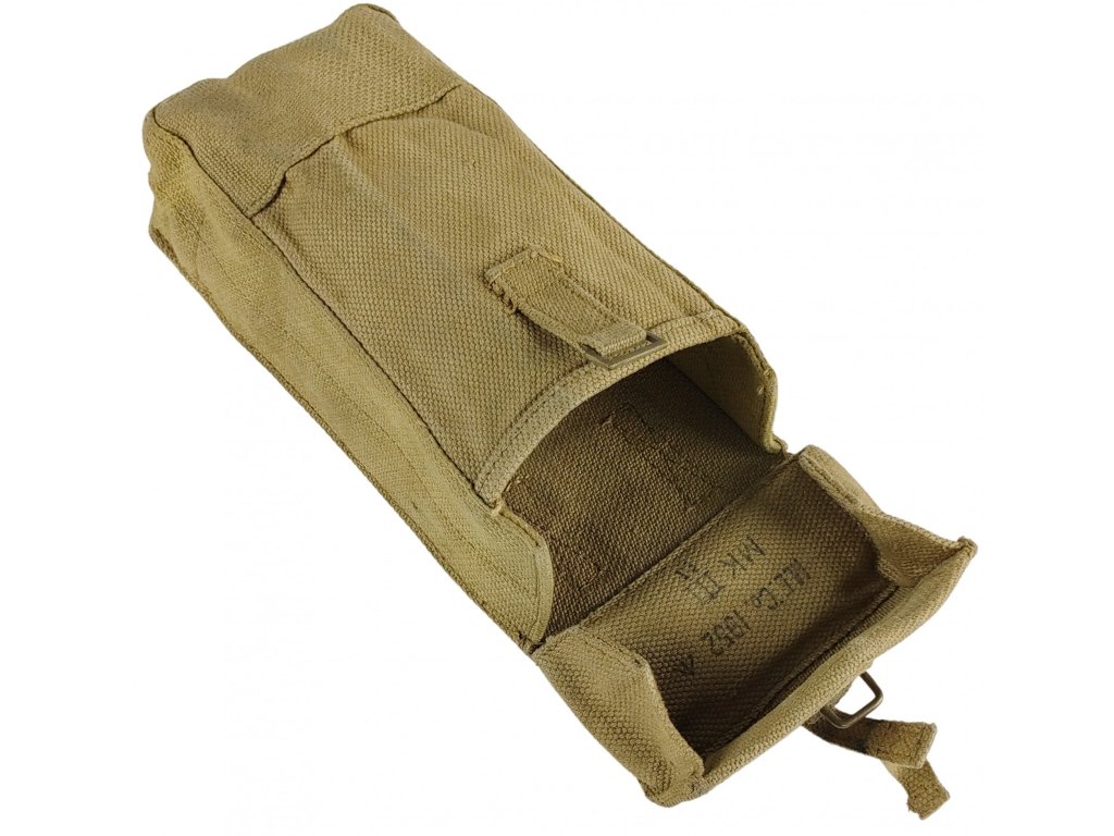 - Originální britská muniční plátěná sumka Mark III, nebo také pouzdro na náboje, munici a ruční granáty, pocházející z výstroje pozemních ozbrojených sil Královské armády Velké Británie (britské armády).