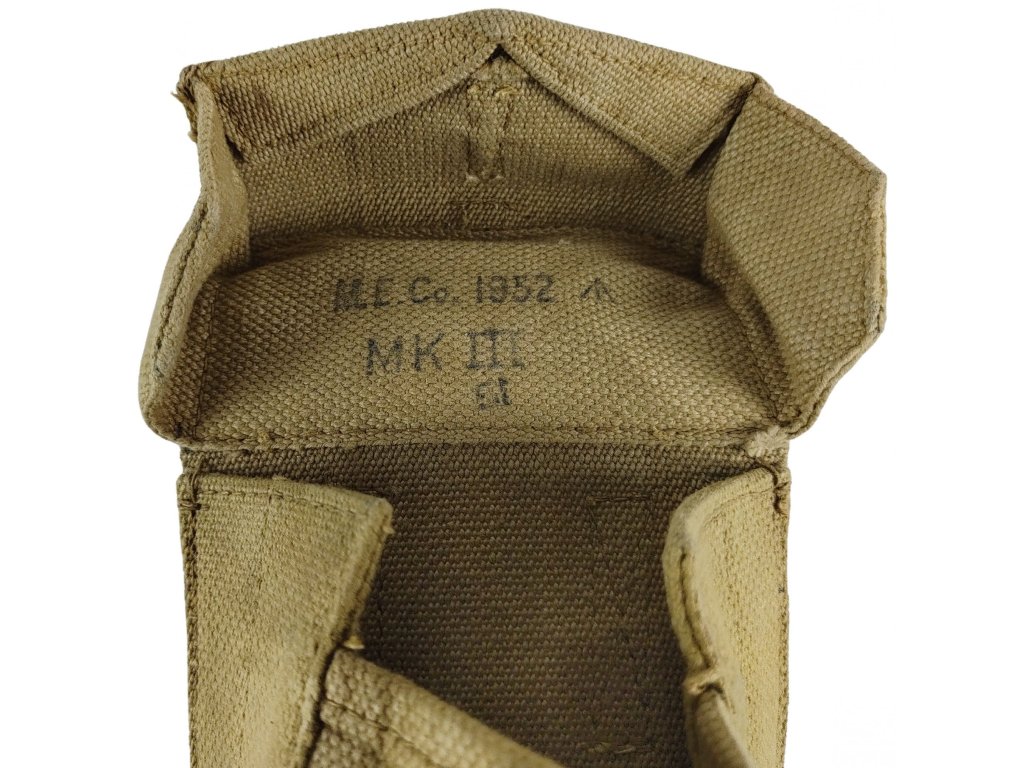 Originální muniční kapsa Mark III (MK III.) britského nosného systému 1937 Pattern Webbing ze silného bavlněného plátna hnědé barvy khaki. Sumky jsou vyrobeny společnostmi The Mills Equipment Company (ME CO Ltd) a Michael Wright & Sons (MW&S Ltd) v 50. letech na konci druhé světové války, převážně v roce 1952 a 1953. Jde o základní pouzdro k uložení a přenosu nábojů, zásobníků, munice a ručních granátů.